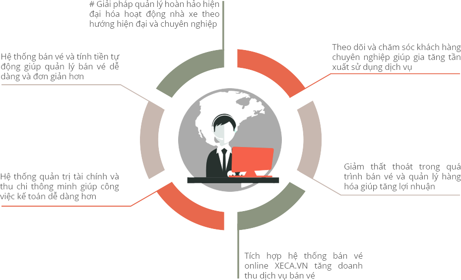 "Để giải quyết triệt để các nghiệp vụ bán vé, quản lý cho từng nhà xe cụ thể XECA đã áp dụng quy trình làm việc sau nhằm đem lại cho chủ hãng xe hiểu rõ nhất về phần mềm quản lý bán xe XECA"